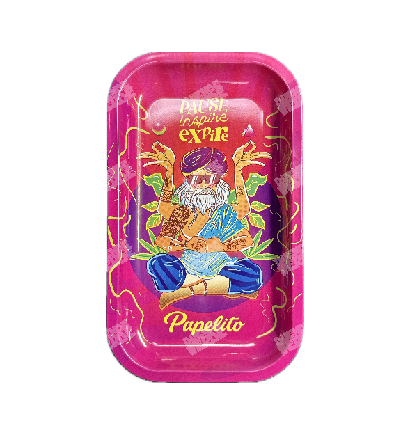 Organize todo o seu kit com a bandeja de metal média Papelito, o tamanho ideal para quem tem vários acessórios e busca organização completa sem ocupar a mesa inteira. Com generosos 27cm de comprimento, esta bandeja oferece espaço amplo para dichavador, seda, isqueiro, piteiras, ervas e todos os itens essenciais do seu kit intermediário, mantendo tudo organizado e à mão durante o preparo.